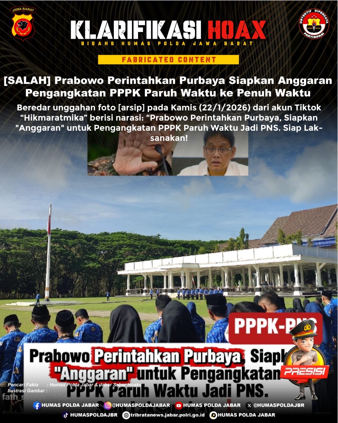 [SALAH] Prabowo Perintahkan Purbaya Siapkan Anggaran Pengangkatan PPPK baParuh Waktu ke Penuh Waktu