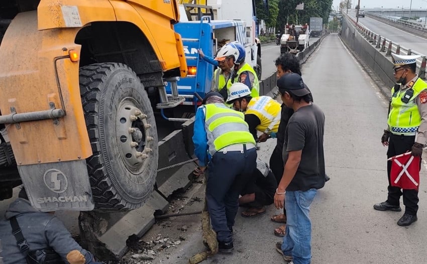Separator Busway di Jalan S Parman dan Gatsu Ditabrak Truk Trailer dan Mobil Listrik Get SindoNews App Baca berita lebih mudah Scan QR Code untuk download aplikasi: Log in Home Nusantara Jabodetabek Cerita Pagi Indeks Home Nusantara Jabodetabek Cerita Pagi Indeks Log in Kanal Beranda Nasional Internasional Daerah Lifestyle Sports Ekonomi Bisnis Teknologi Otomotif Edukasi Kalam Multimedia SINDOnews TV Indeks Today’s HI-LITE More SindoScope More Live TV RCTI GTV MNC TV iNews Radio Live MNC Trijaya Global Radio V Radio RDI MNC Networks RCTI+ Vision+ MotionPay Motion Life Motion Trade Motion Banking Mister Aladin Home Jabodetabek Separator Busway di Jalan S Parman dan Gatsu Ditabrak Truk Trailer dan Mobil Listrik Riyan Rizki Roshali, Danandaya Aria Putra Jum’at, 27 Februari 2026 – 11:09 WIBloading… Truk trailer menabrak separator jalur busway di Jalan S Parman, Jakarta Barat. Foto: Istimewa A A A JAKARTA – Dua peristiwa kecelakaan terjadi di lokasi yang berbeda pada pagi ini. Satu unit truk trailer menabrak separator jalur busway di Jalan S Parman, Jakarta Barat. Akibatnya, lalu lintas di sekitar lokasi sempat mengalami kemacetan. KBO Satlantas Polres Metro Jakarta Barat AKP Sudarmo menjelaskan, peristiwa itu terjadi pada pukul 05.00 WIB. Dia menyebutkan, bagian kanan truk tersangkut di atas separator busway membuat truk tak bisa berjalan. “Kendaraan truk sumbu tiga kosong, nabrak sparator busway pertigaan gelong arah Tomang,” kata Sudarmo kepada wartawan, Jumat (27/2/2026).Sudarmo mengatakan, imbas kemacetan yang terjadi akibat kecelakaan tunggal tersebut cukup panjang. Kepadatan terjadi sampai Flyover (FO) Grogol mengarah ke Tomang.”Perlambatan sampai FO Grogol arah Tomang,” ujar Sudarmo. Halaman :123 Lihat Juga : Update Tabrakan Transjakarta di Jalur Langit, 23 Orang Terluka Bus Transjakarta Tabrakan di Jalur Langit Cipulir Pagi Ini, Penumpang Berhamburan Follow WhatsApp Channel SINDOnews untuk Berita Terbaru Setiap Hari Follow Dapatkan berita terkini dan kejutan menarik dari SINDOnews.com, Klik Disini untuk mendaftarkan diri anda sekarang juga! kecelakaan mobil listrik truk separator busway separator Lanjut Baca Berita Terkait Lainnya Berita Terkait Update Tabrakan Transjakarta di Jalur Langit, 23 Orang Terluka Bus Transjakarta Tabrakan di Jalur Langit Cipulir Pagi Ini, Penumpang Berhamburan Rumah di Jalan Brawijaya Jaksel yang Ditabrak Mobil Ternyata Milik Anak Jusuf Kalla 27 Kejadian Kecelakaan Akibat Jalan Berlubang Selama 1-28 Januari 2026, 1 Orang Tewas Usai Tabrak 2 Orang hingga Tewas di Tambora, Mazda Maut yang Kabur Tertabrak Kereta YLKI: Pencabutan Subsidi Mobil Listrik Berpotensi Rugikan Konsumen Reputasi Tank Runtuh? Volvo Terpaksa Tarik 40.000 SUV Listrik Akibat Ancaman Baterai Terbakar Ditimpa Lengan Baja Ekskavator 22 Ton, Bodi BYD Atto 1 Tetap Utuh, Warganet: Kuat Juga! Ekosistem Jadi Kunci: Cara Merek Ini Menancapkan Posisi Sebagai EV Premium di Indonesia Rekomendasi 5 Negara dengan Utang IMF Terbesar 2026, Nomor 1 Tembus Rp967 Ribu Triliun Musim Baru MotoGP Dimulai! Marc Marquez dan Rival Siap Panaskan Thailand, Streaming di VISION+ TV Panasonic Hilang dari Pasaran, Jepang Kembali Kehilangan Ikon Elektronik Selengkapnya Pemprov DKI Larang Pembangunan Lapangan Padel Baru di Perumahan Bus Transjakarta Tabrakan di Jalur Langit Cipulir Pagi Ini Gempa M7,2 Guncang Sabah Malaysia, Terasa hingga Tarakan Berita Terkini Selengkapnya Pelaku Usaha di Madura Dorong Pemerintah Berlakukan Tarif Khusus Rokok Sopir Ugal-ugalan di Gunung Sahari Jadi Tersangka Kepemilikan Sajam dan Pelat Palsu Perkuat Sinergi Akademik dan Pengembangan SDM Daerah, PSDKU ULM Kotabaru Gelar Kuliah Umum Apresiasi Kolaborasi MNC Peduli-SDN Petojo Selatan 01, Kepsek: Bantu Raih Predikat Adiwiyata Mandiri Koh Erwin Pemasok Narkoba ke AKBP Didik Ditangkap saat Hendak Kabur ke Malaysia Penyeberangan MerakBakauheni Terkendala Dermaga, Gapasdap: Kaji Ulang Izin Kapal Baru Selengkapnya Umrah Mandiri Dilegalkan, Jemaah Bakal Booming? Alih Penyelenggara Ibadah Haji, Apa Saja Tantangannya? Terpopuler 1 6 AKBP Dimutasi Kapolda Metro Jaya, 2 di Antaranya Jadi Kapolsek 2 Banjir Terjang 3 Wilayah di Bali, Puluhan Jiwa Terdampak 3 Semarak Ramadan, Belanja Bareng Yatim dan Salurkan 4.500 Paket Sembako 4 Anis Byarwati Beri Bantuan Meja dan Kursi Posyandu Lansia dan Balita RW 03 Batu Ampar 5 Negatif Narkoba, Sopir Mobil Ugal-ugalan di Gunung Sahari Terancam 4 Tahun Penjara Infografis Daftar Pemain dan Jadwal Timnas Indonesia U-17 di Piala Dunia U-17 Shares Selengkapnya Kanal Nasional Daerah Lifestyle Ekonomi Bisnis Teknologi Edukasi Multimedia Internasional Sports Otomotif Kalam Hi-Lite Sindoscope MNC Portal Okezone.com iNews.id IDX Channel About Us Tentang Kami Redaksi Privacy Policy Kode Etik Sitemap Disclaimer Term of Service Kontak Kami Copyright ©2026 SINDOnews.com All Rights Reserved